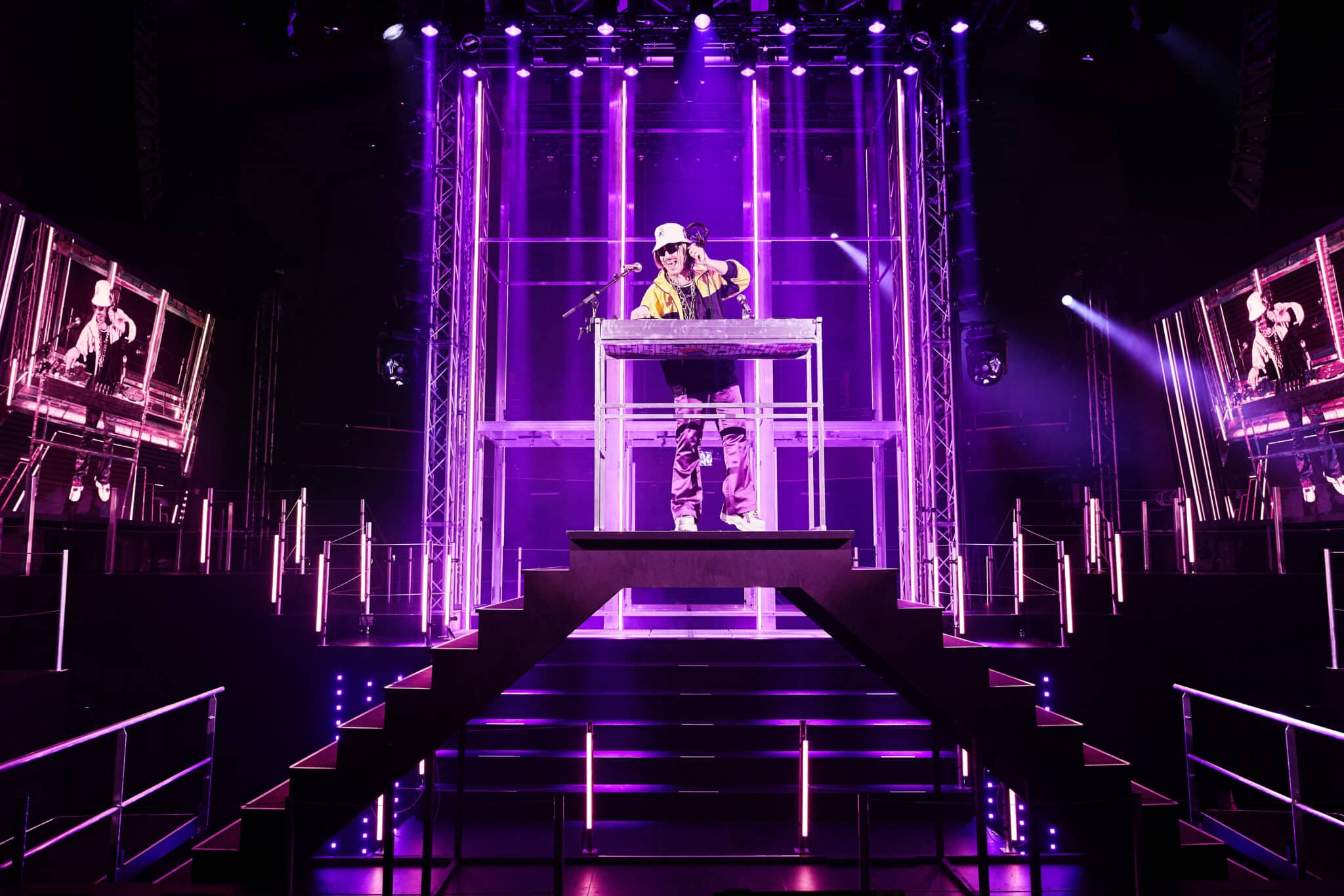 Podier og trapper rundt om, samt storskærme, hvor handlingen undervejs filmes og projekteres op på. Greb der gør scenen både spændende og velfungerende. Specielt til musicalens koncertøjeblikke, hvor det er med til at skabe en spektakulær vibe. I samspil med lysdesignet af Peter Løvenhardt.