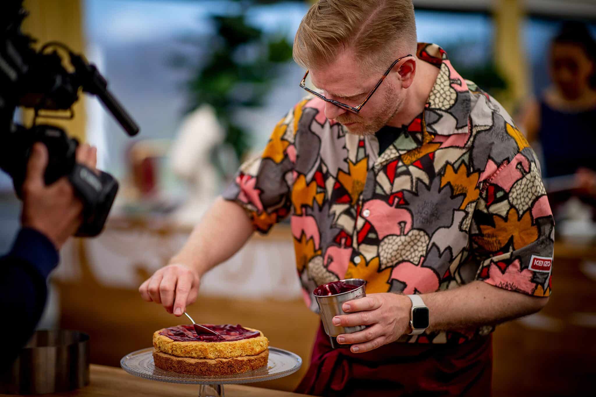 ’Eftersom jeg sjældent bager kager, var jeg langt bagud på point fra start. Læringskurven var absurd stejl, og jeg kæmpede virkelig med at komme i mål med idéerne herhjemme. Ofte blev ovnen først slukket efter midnat. Rune sagde vores lejlighed lignede et opbevaringsrum, fordi der var udstyr, maskiner og ingredienser overalt. Han havde 100 % ret.”