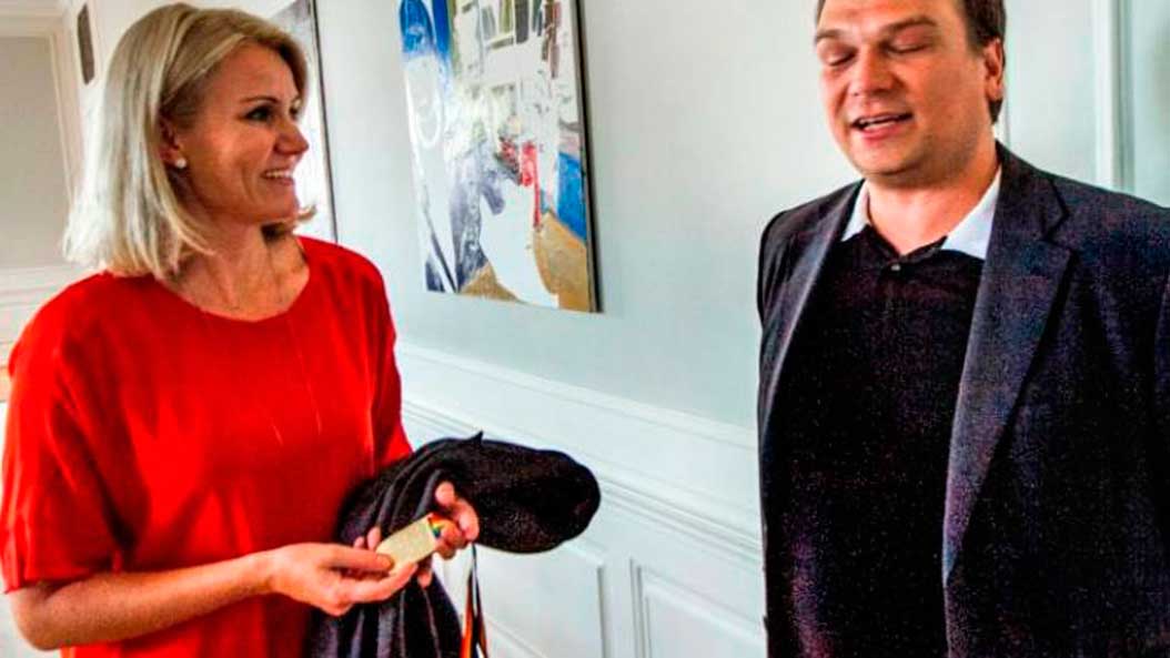 “Jeg er ikke sikker på, at det passer helt i dit smykkeskrin”, sagde Søren Aare Jensen, til Helle Thorning-Schmidt, da han overrakte statsministeren sin helt egen, personlige Pan Games-medalje.