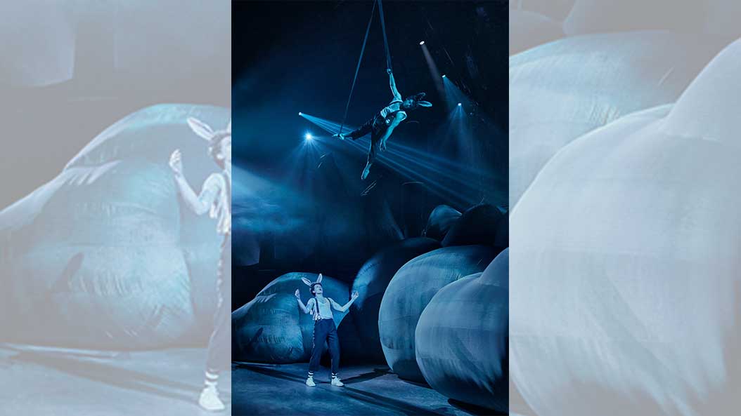 Til gengæld er jeg ikke sikker på, hvorfor kaninerne derefter forvandles til K-pop lignende dansere, men sjovt er det, fordi danserne måler fra XXS til XXL i størrelse og udvider dansen med akrobatik og kæmpesving under gasværkets kuppel. Længe leve mangfoldigheden – for nu at blive i den Gnagske univers.